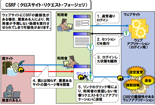 http://zhifubao.com/withdraw?account=alibaba&amount=10000&for=alibaba2可以把账号alibaba的 10000 元转到另外一个账号alibaba2上去。通常情况下,该请求发送到支付宝服务器后,服务器会先验证该请求是否来自一个合法的session并且该session的用户已经成功登陆 - 攻击者在支付宝有账号
