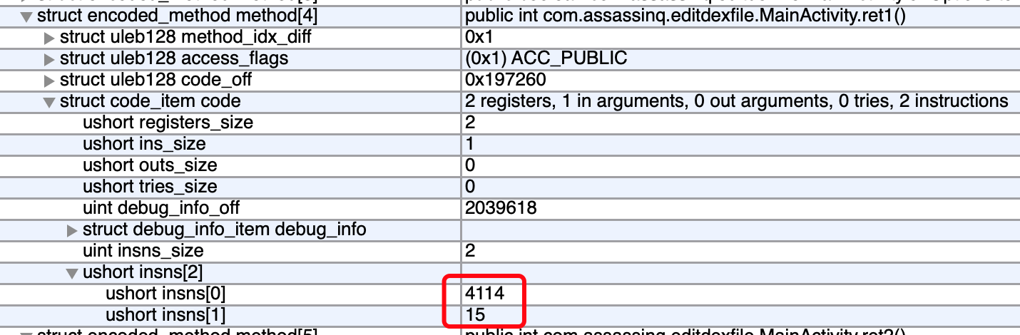 | method_ids_off | 0x5c | 4 | 方法列表基址 |