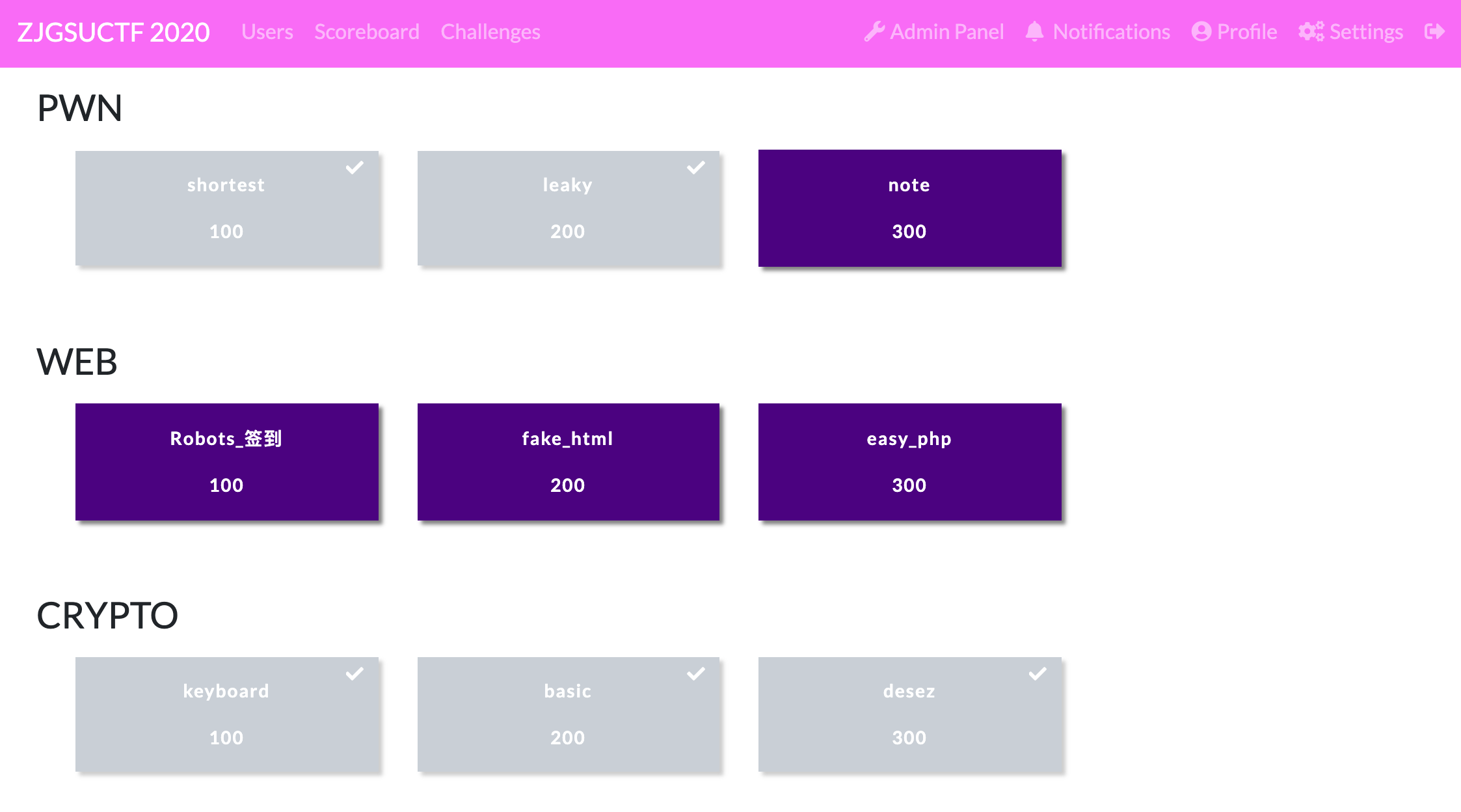 $ screen docker run --name="ZJGSUCTF-2020" -p 80:8000 -it ctfd/ctfd
